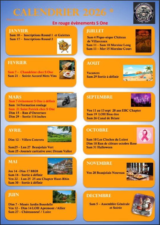 Le calendrier 2026 est maintenant en ligne. Vous pouvez le consulter, le télécharger. Il donne les grandes lignes mais reste prévisionnel en fonction des évolutions en cours d’année au fil des événements qui apparaîtraient au fil des mois. |